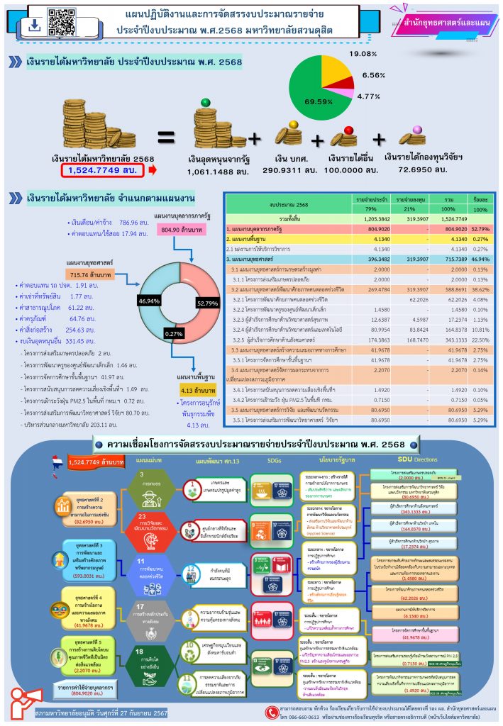 แผนปฏิบัติงานและการจัดสรรงบประมาณรายจ่ายประจำปีงบประมาณ พ.ศ. 2568 (สภามหาวิทยาลัยอนุมัติ 27 กันยายน 2567)Posted on 1 Oct 2024